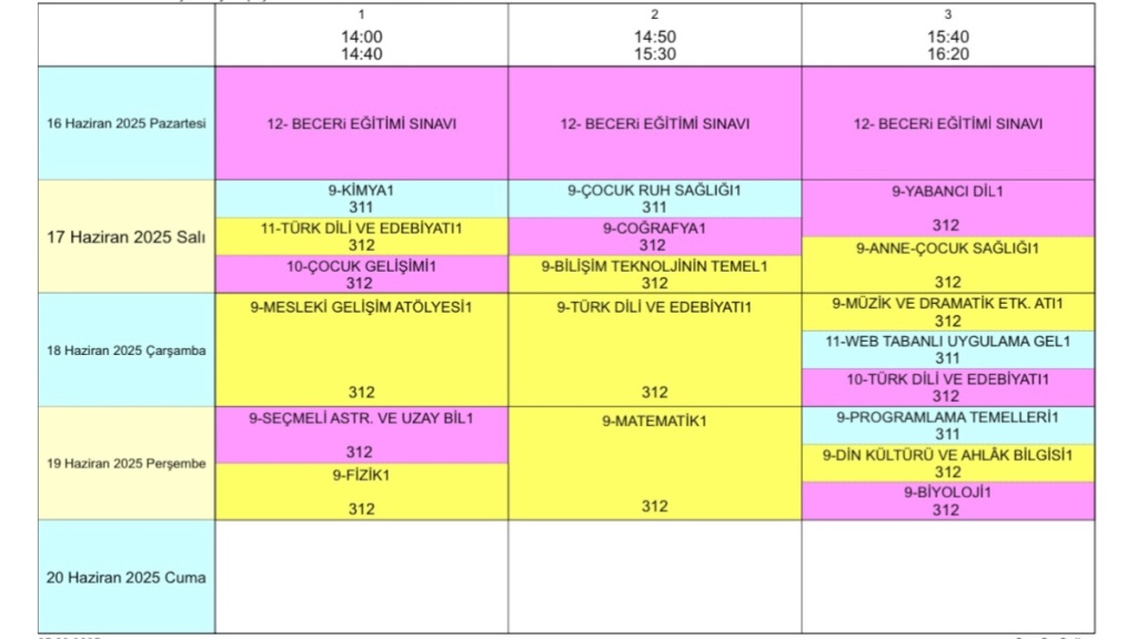 2024-2025 Eğitim Öğretim Yılı Haziran Dönemi Sorumluluk Sınav Programı